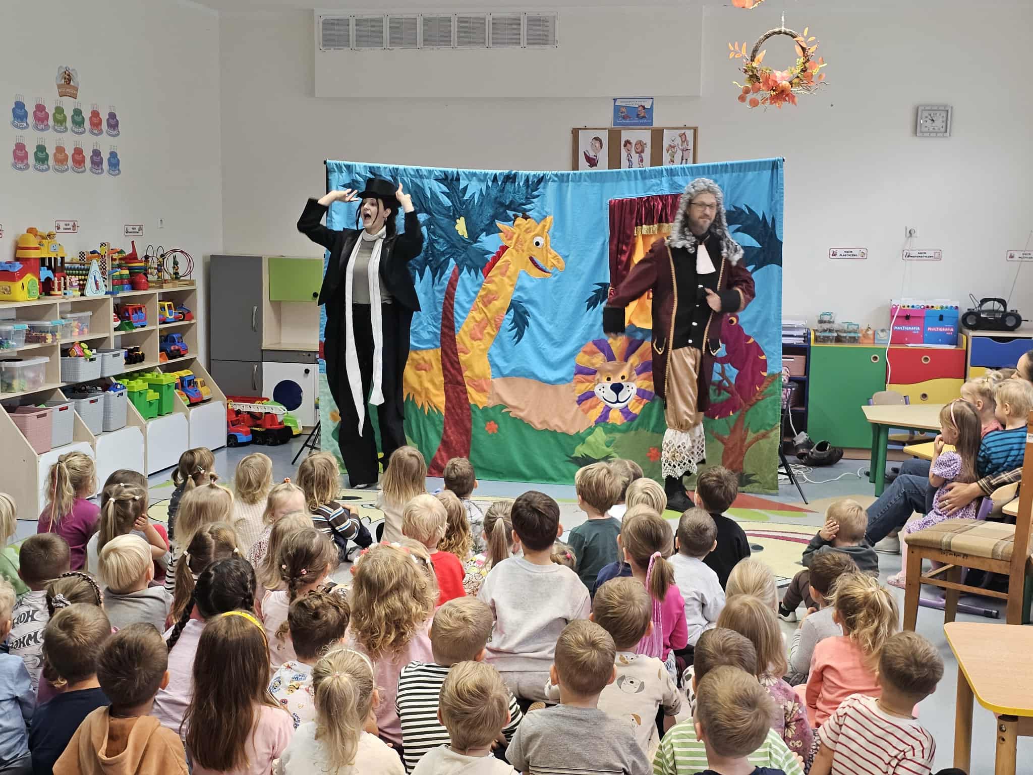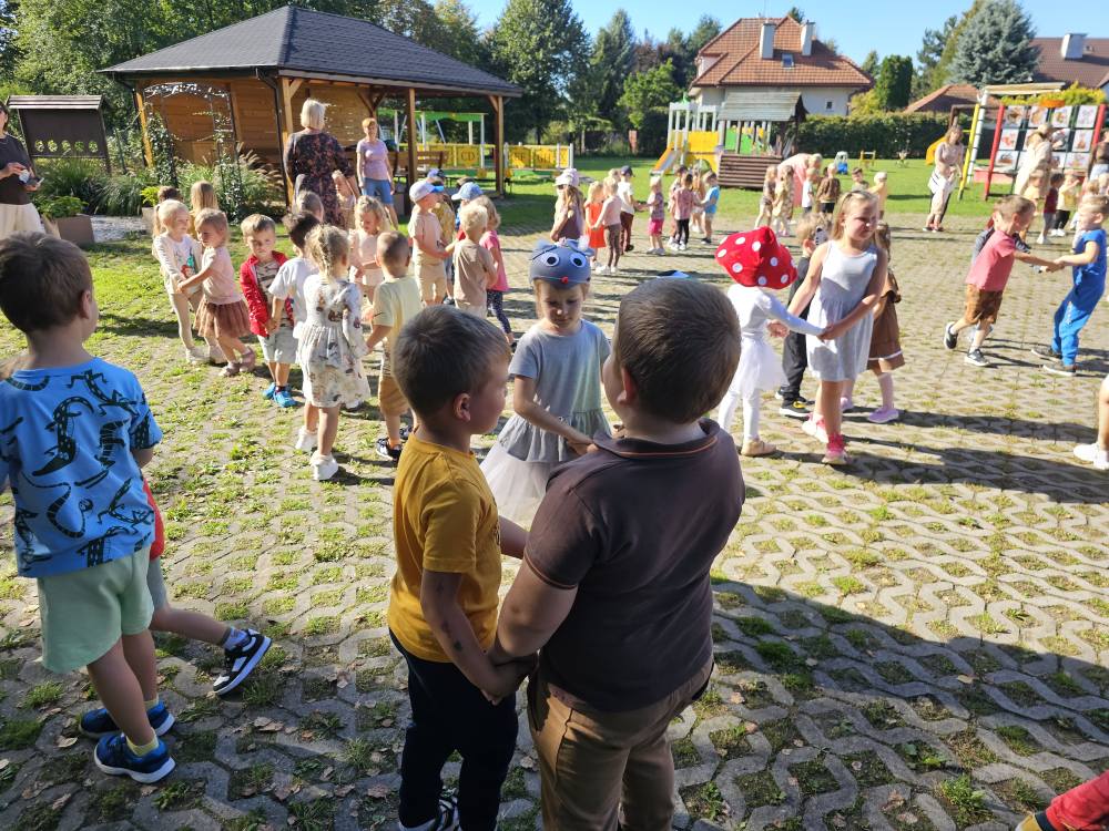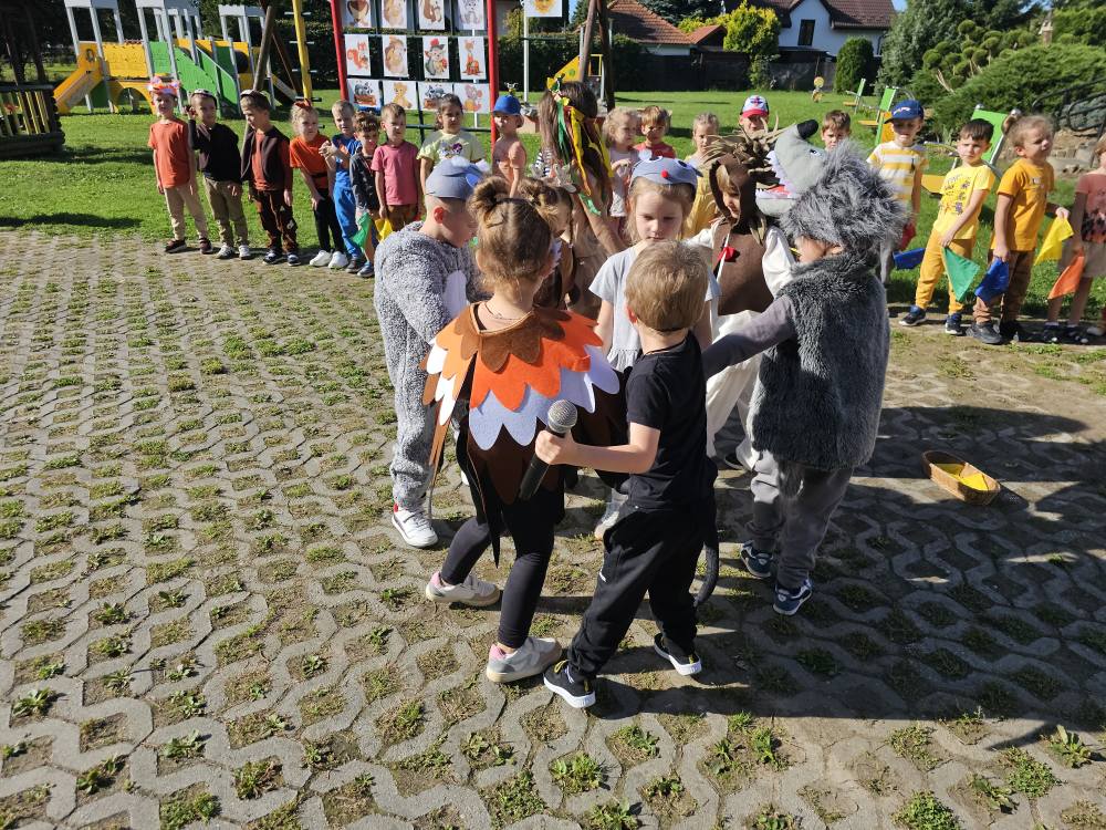 Nie zabrakło śmiechu, zabawy, wspólnego śpiewania i jesiennych inspiracji. Przedszkolaki poznały wartość ekologii, zdrowego odżywiania i siłę przyjaźni – wszystko w magicznej, bajkowej atmosferze!