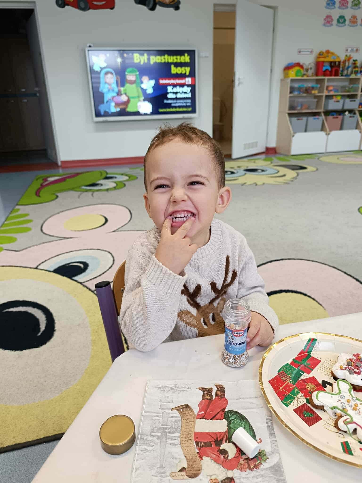 Nasze przedszkolaki z ogromnym zaangażowaniem dekorowały pyszne pierniczki – było dużo lukru, kolorowych posypek i jeszcze więcej radości.