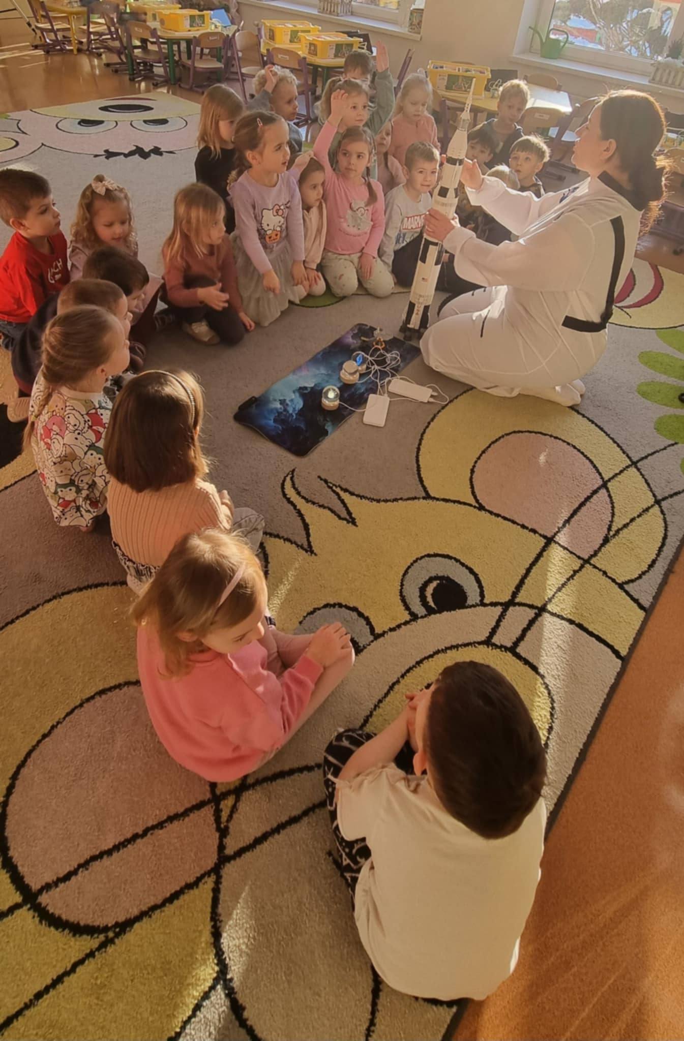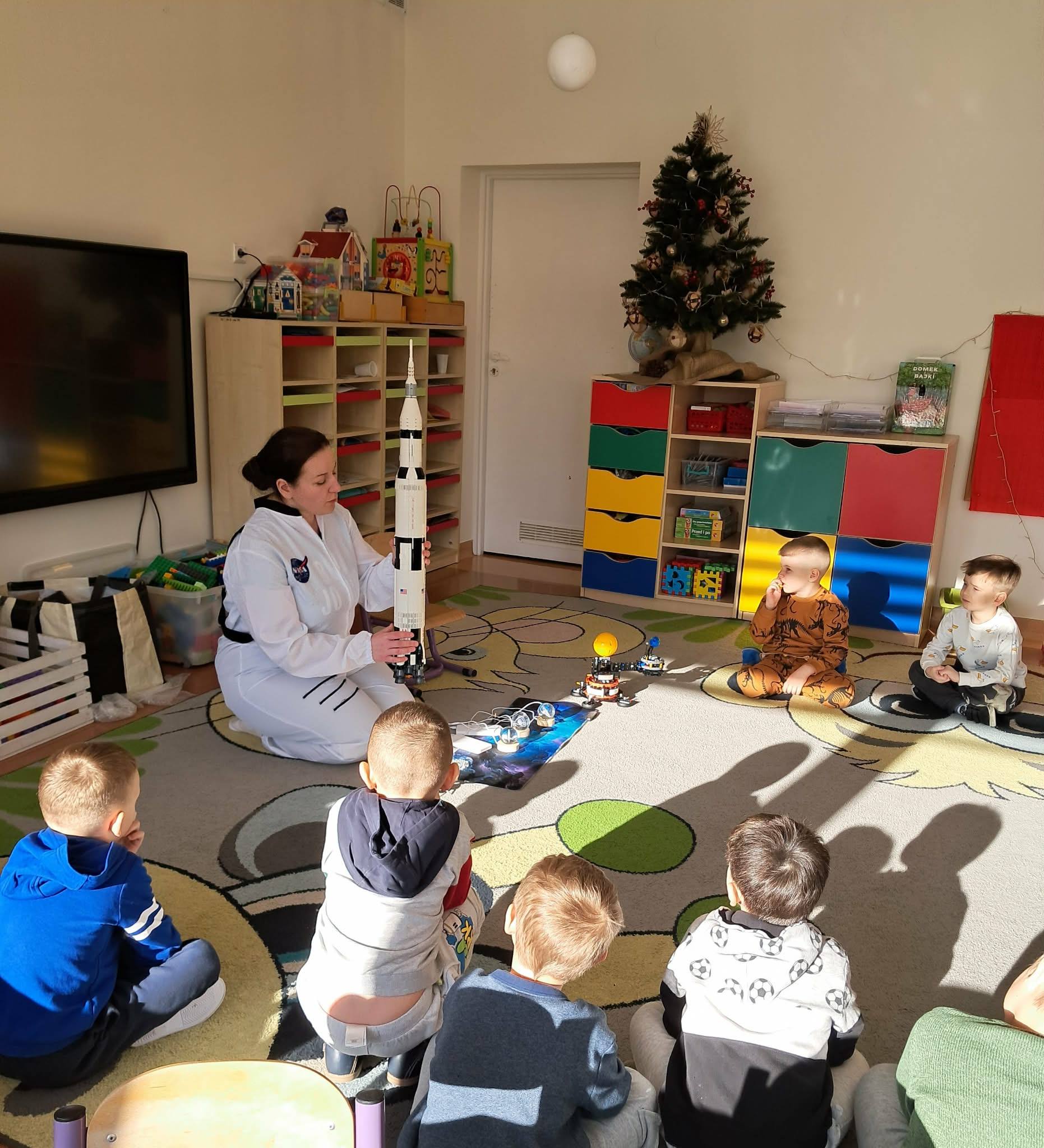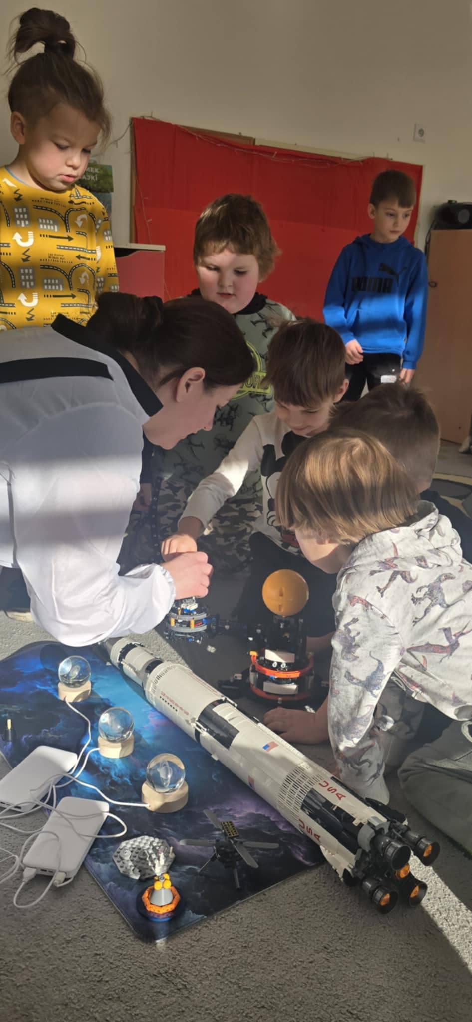 20 stycznia najstarsze grupy z naszego Przedszkola aktywnie uczestniczyły w warsztatach LEGO Kosmos prowadzonych przez instruktorki z firmy RJak Robot .Dzieci z radością budowały łaziki kosmiczne którymi mogły sterować oraz obserwowały przyrodę za pomocą teleskopów ćwicząc w ten sposób motorykę małą i logiczne myślenie.