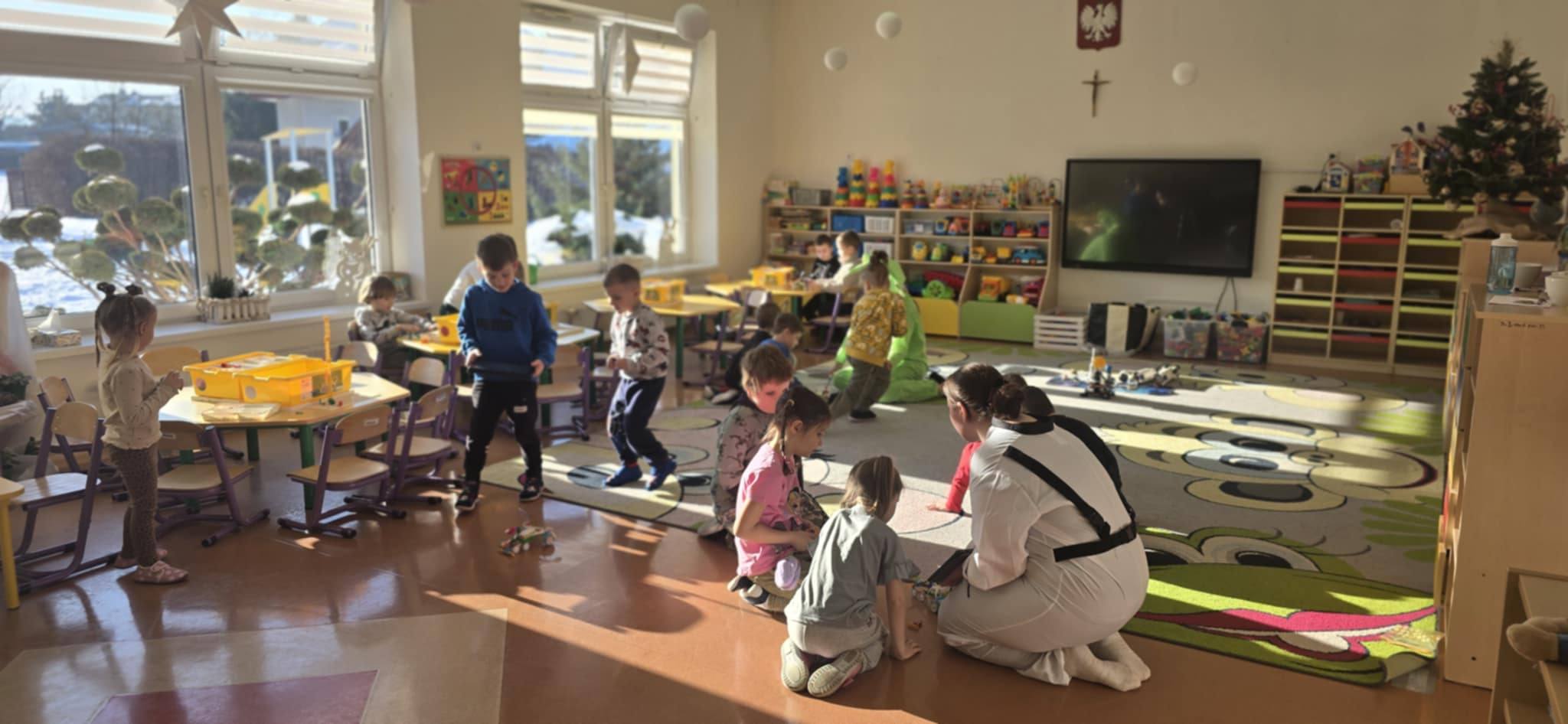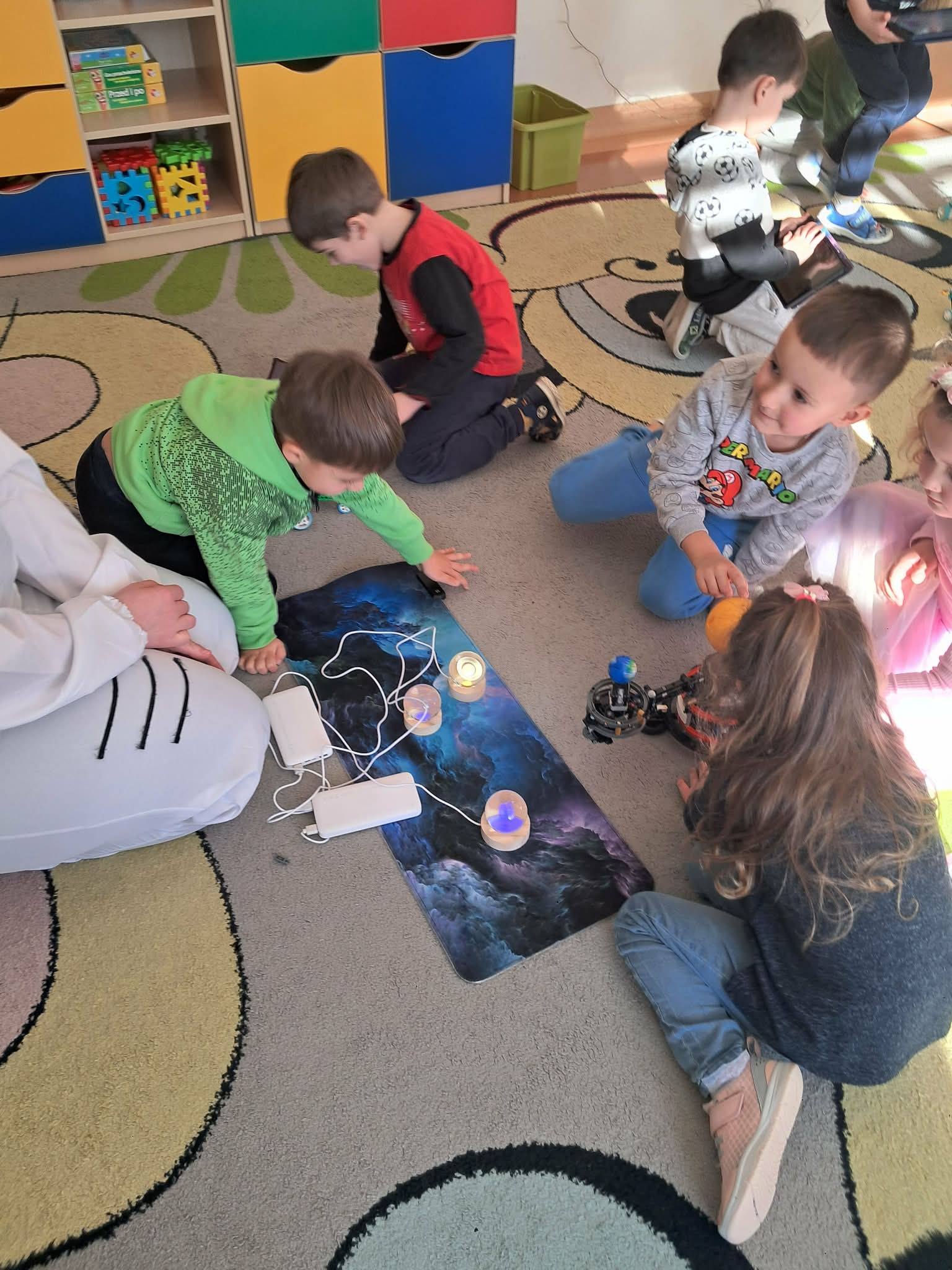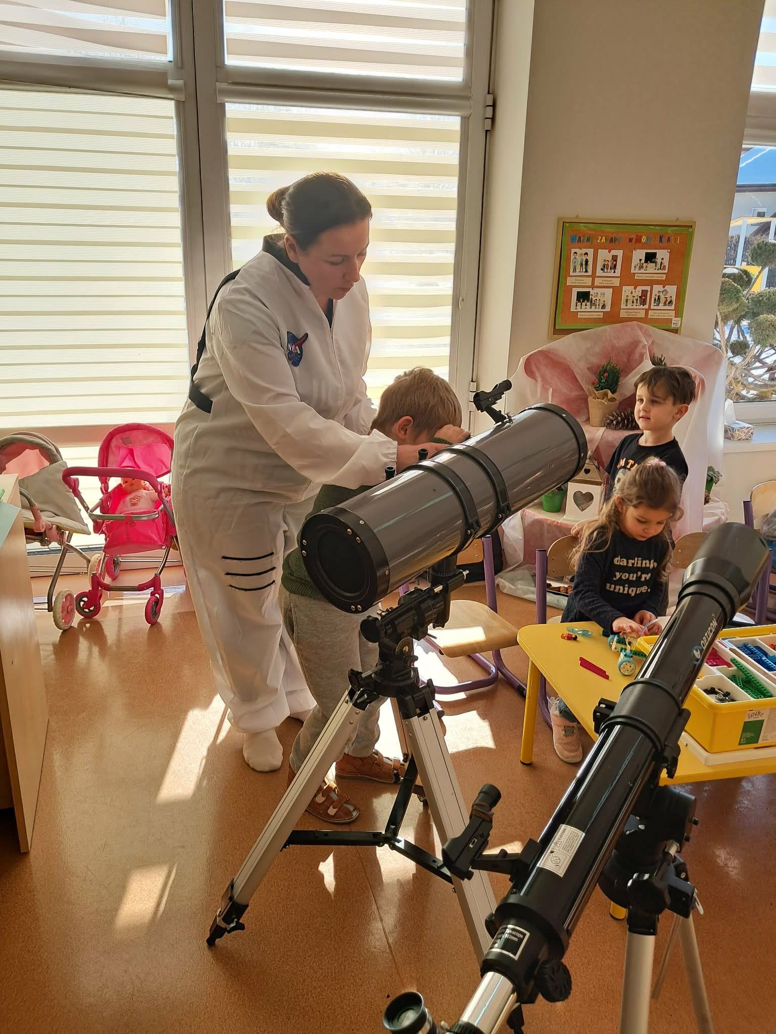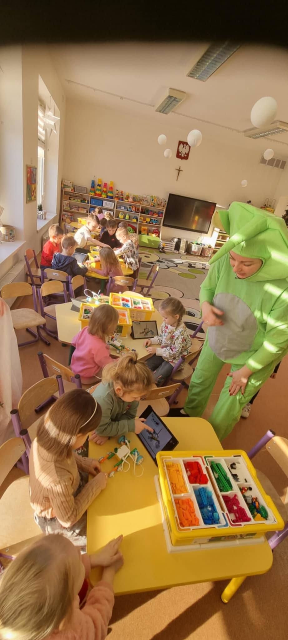 20 stycznia najstarsze grupy z naszego Przedszkola aktywnie uczestniczyły w warsztatach LEGO Kosmos prowadzonych przez instruktorki z firmy RJak Robot .Dzieci z radością budowały łaziki kosmiczne którymi mogły sterować oraz obserwowały przyrodę za pomocą teleskopów ćwicząc w ten sposób motorykę małą i logiczne myślenie.