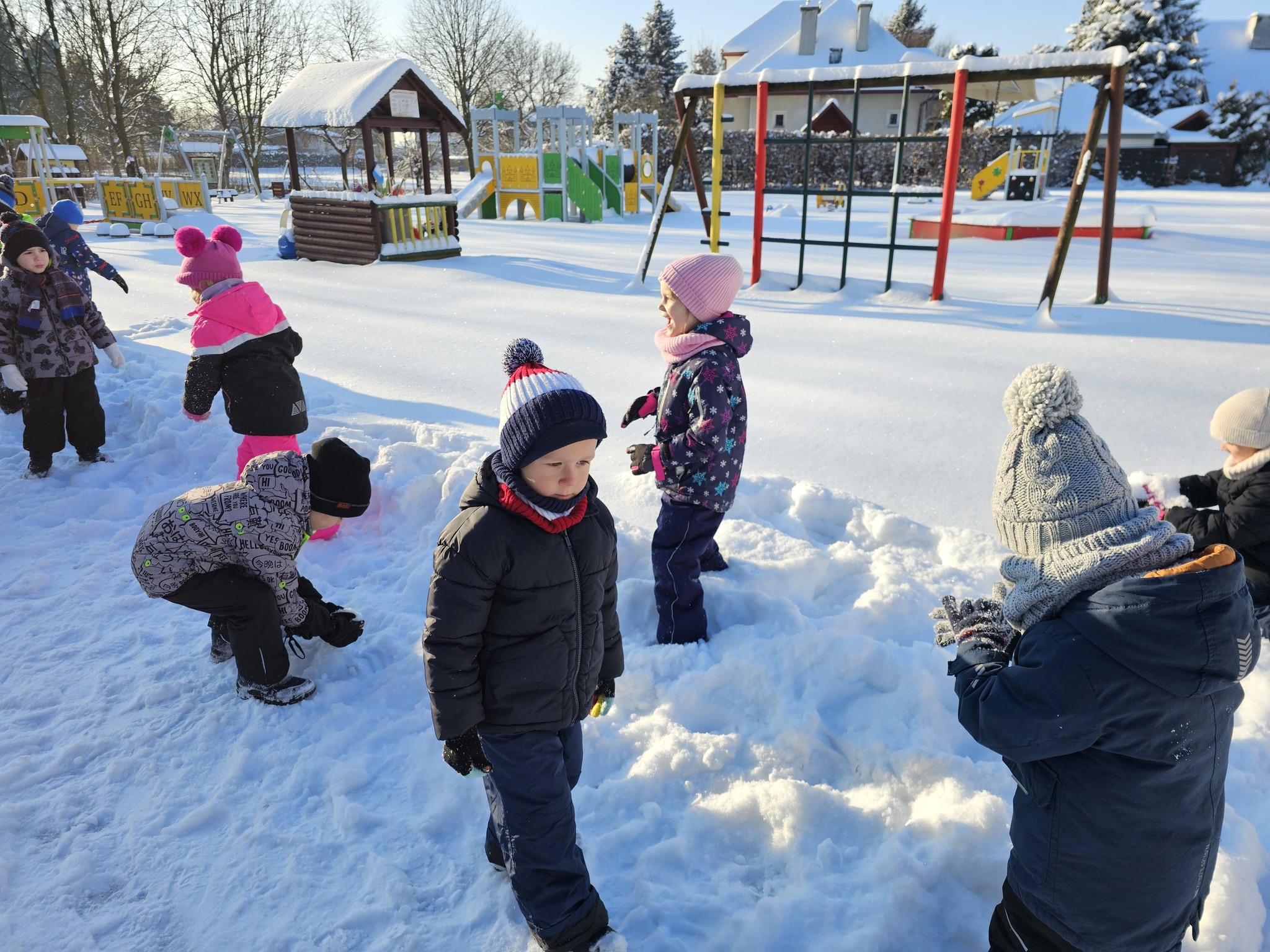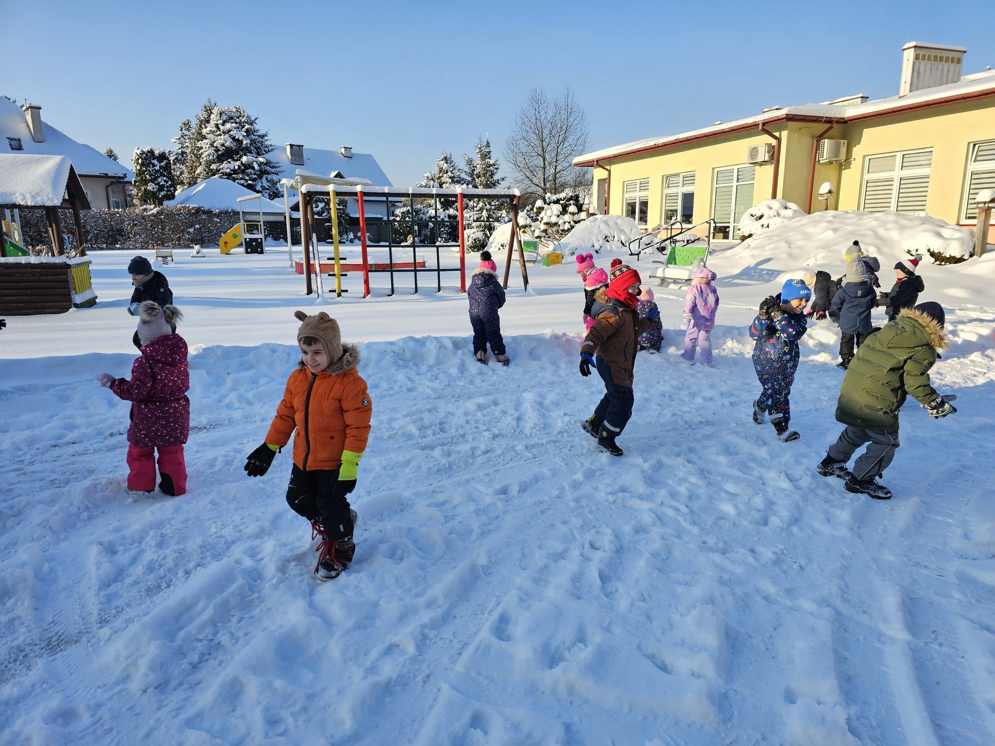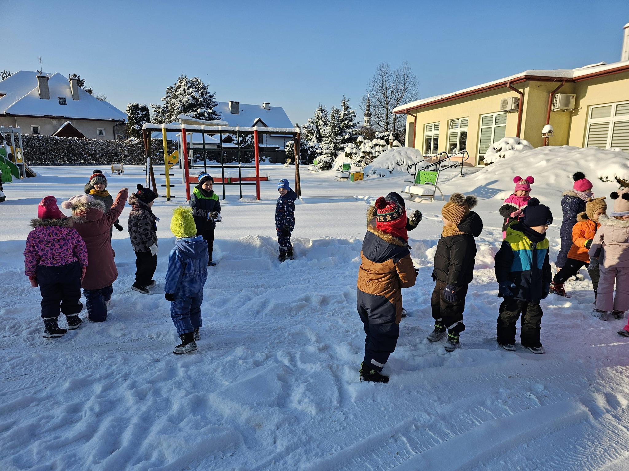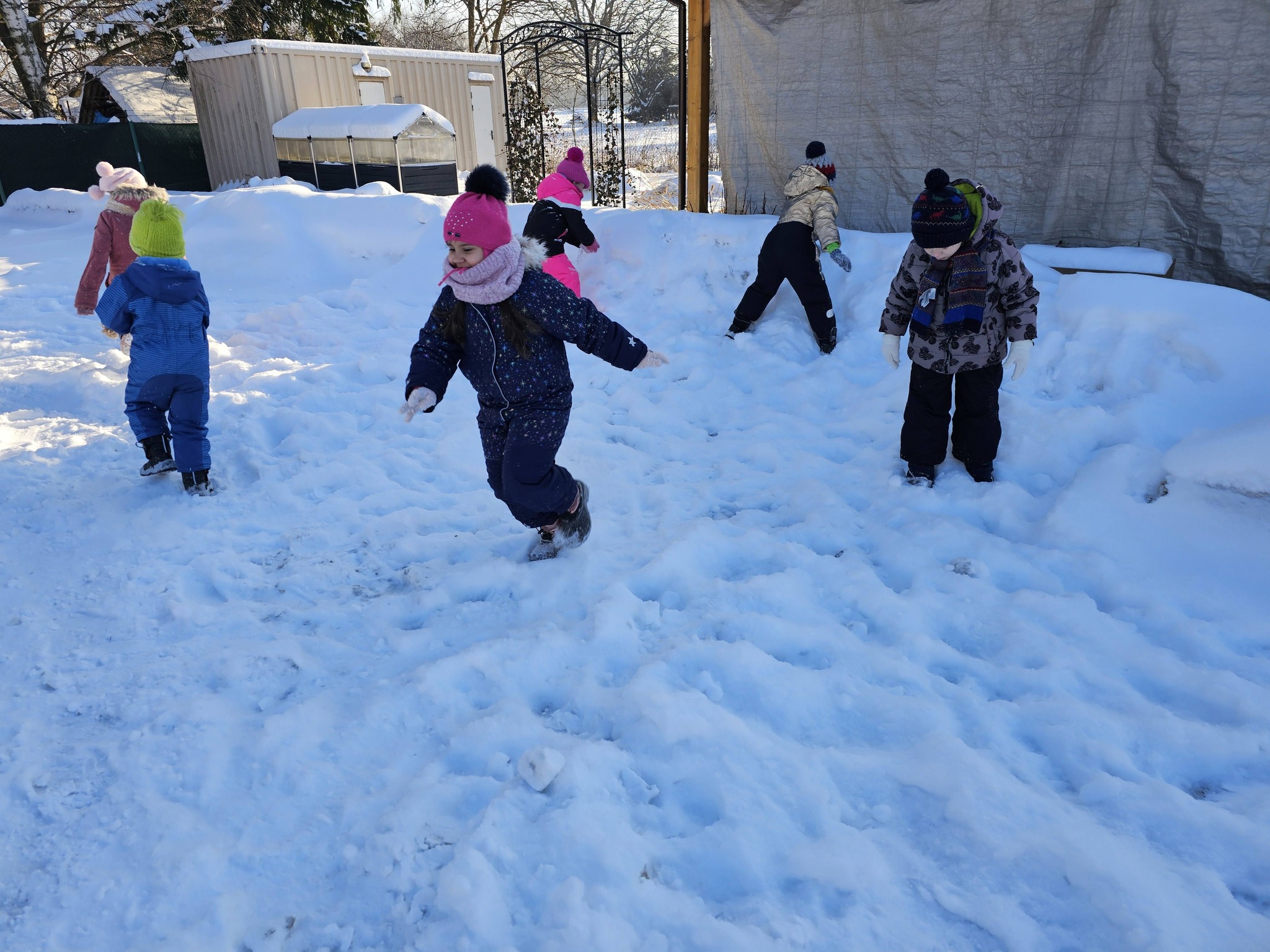 Zimowe zabawy na na śniegu starszaków