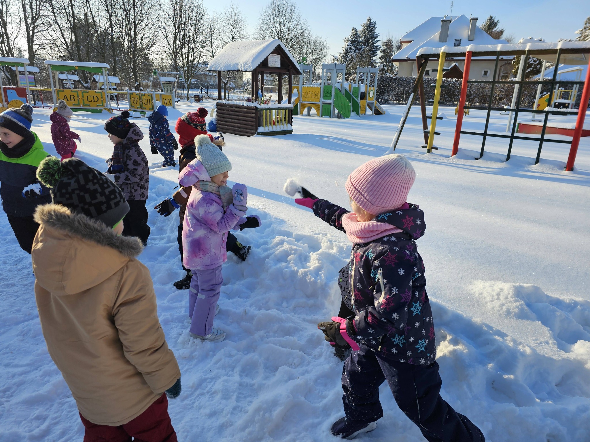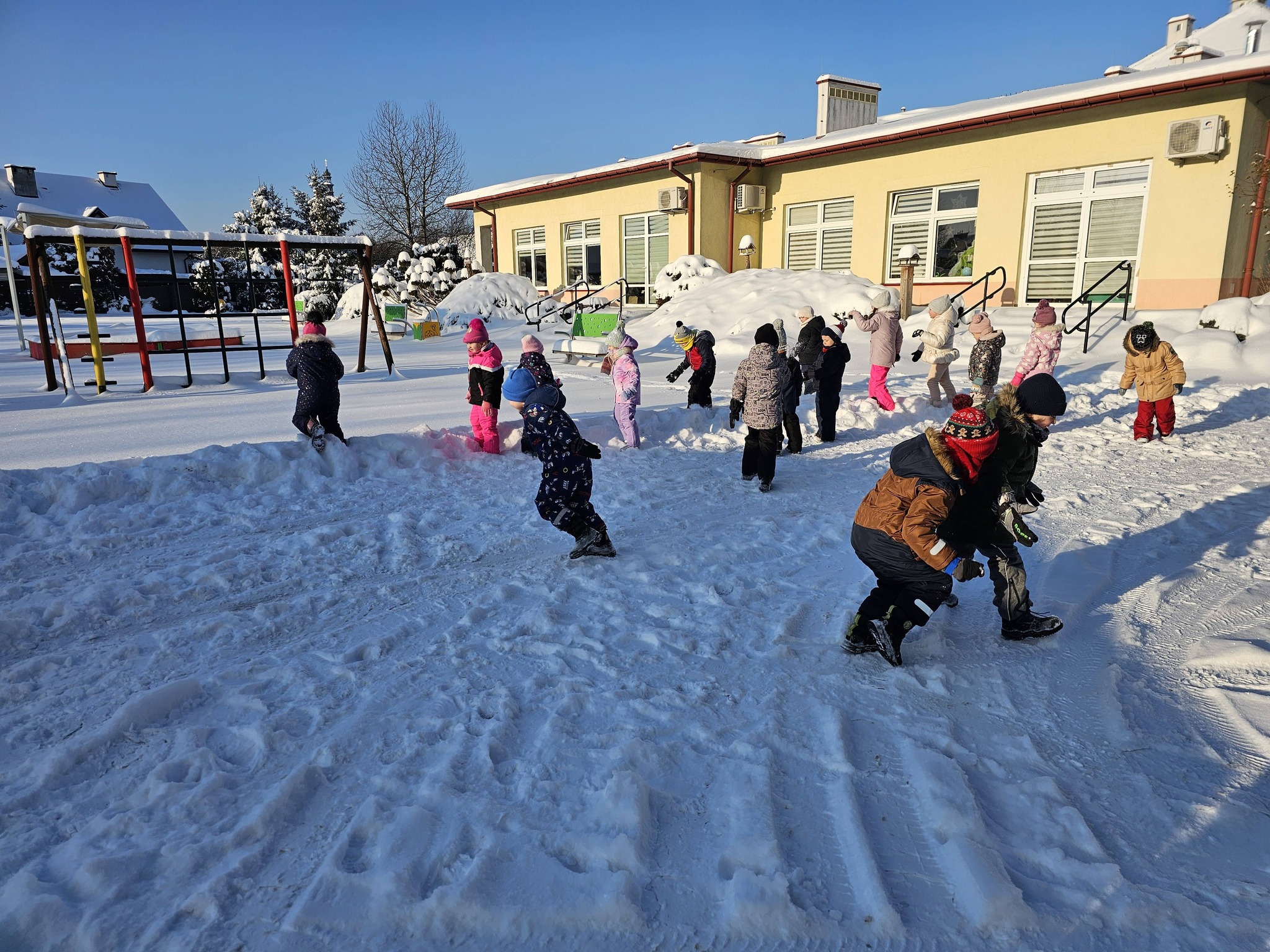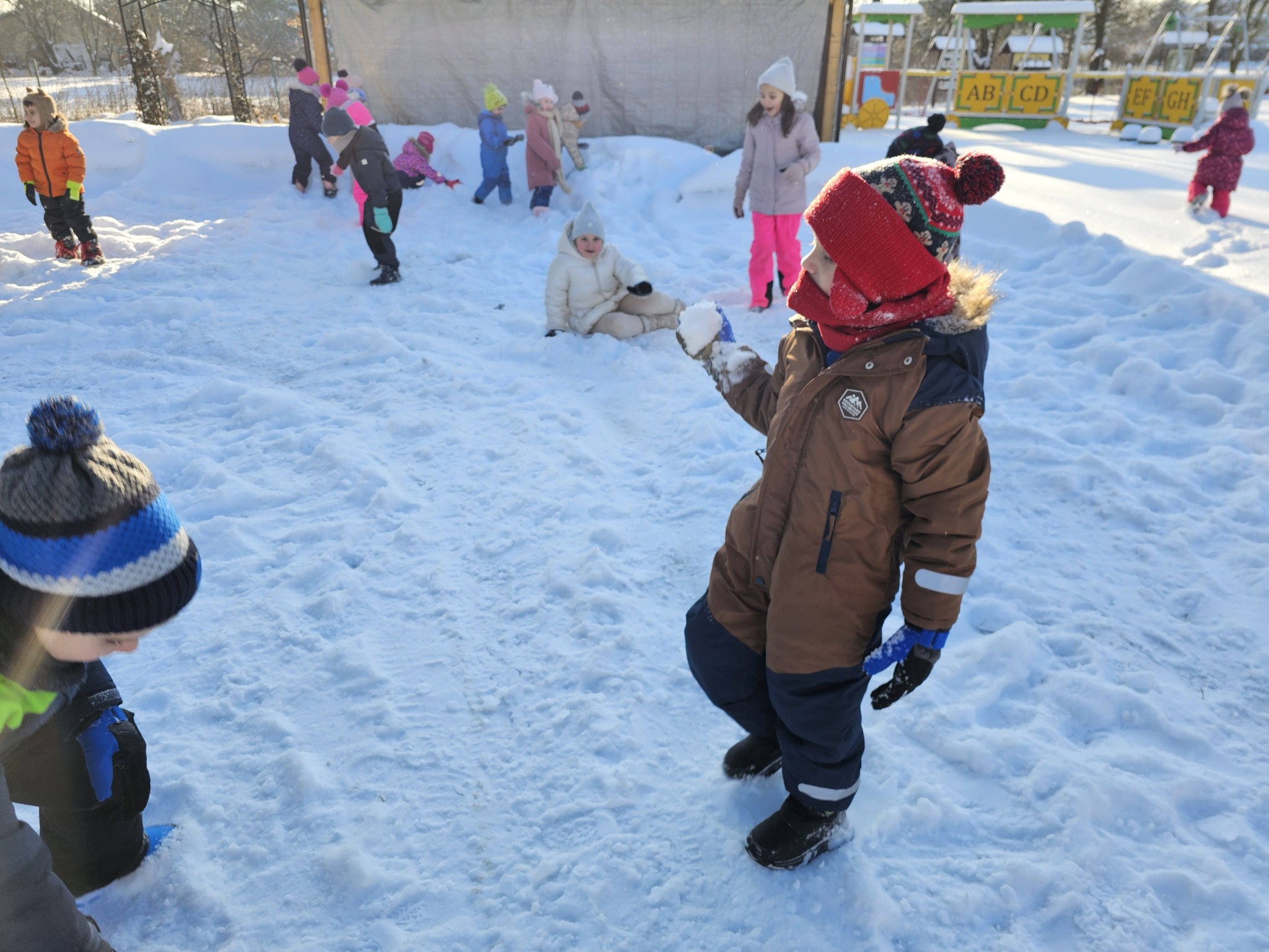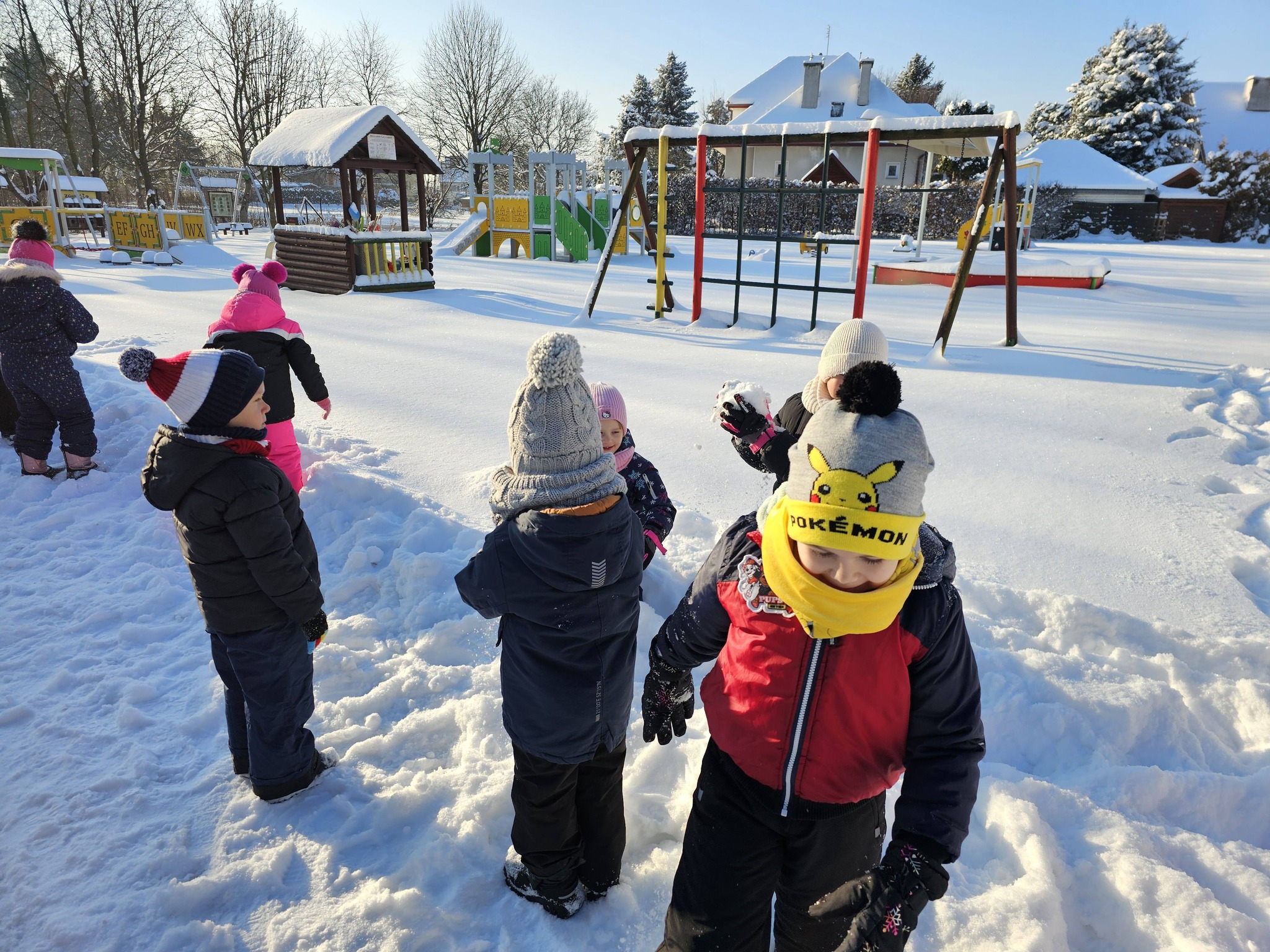 Zimowe zabawy na na śniegu starszaków