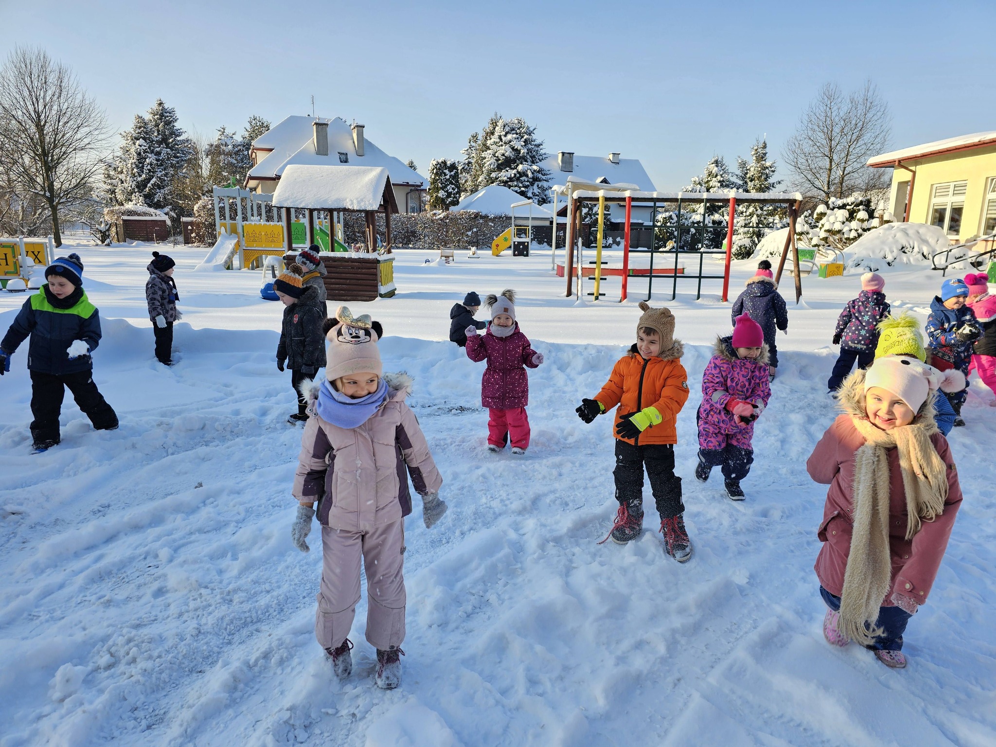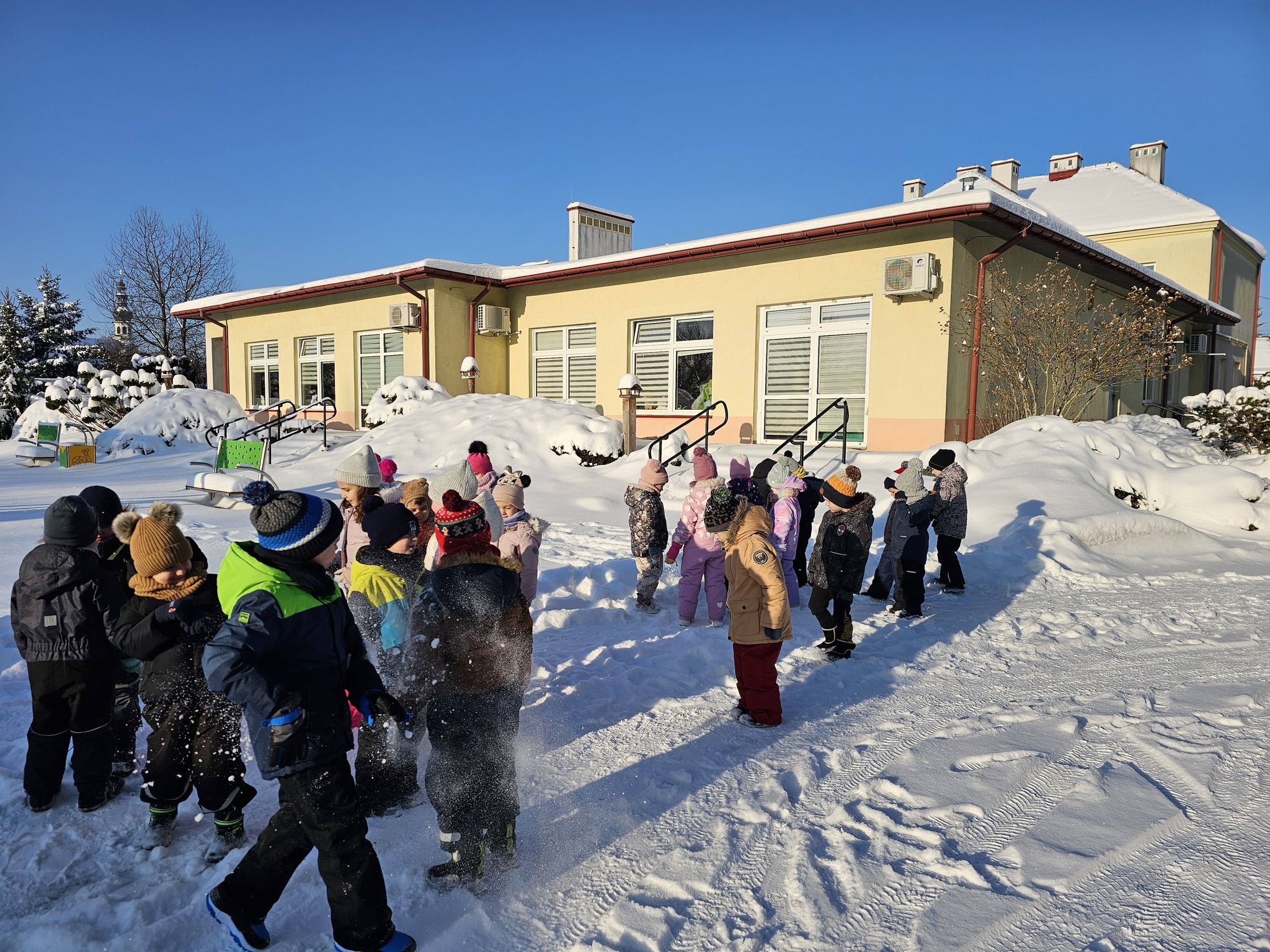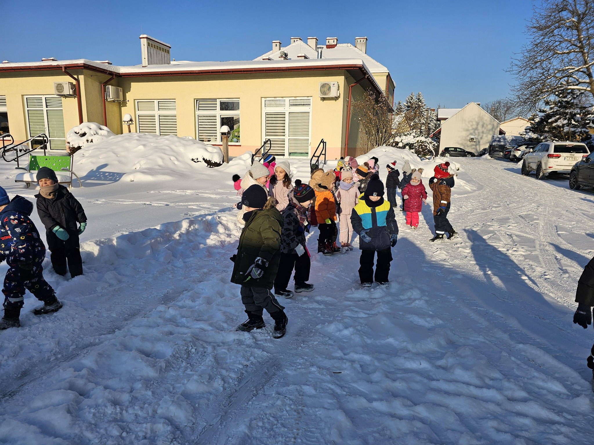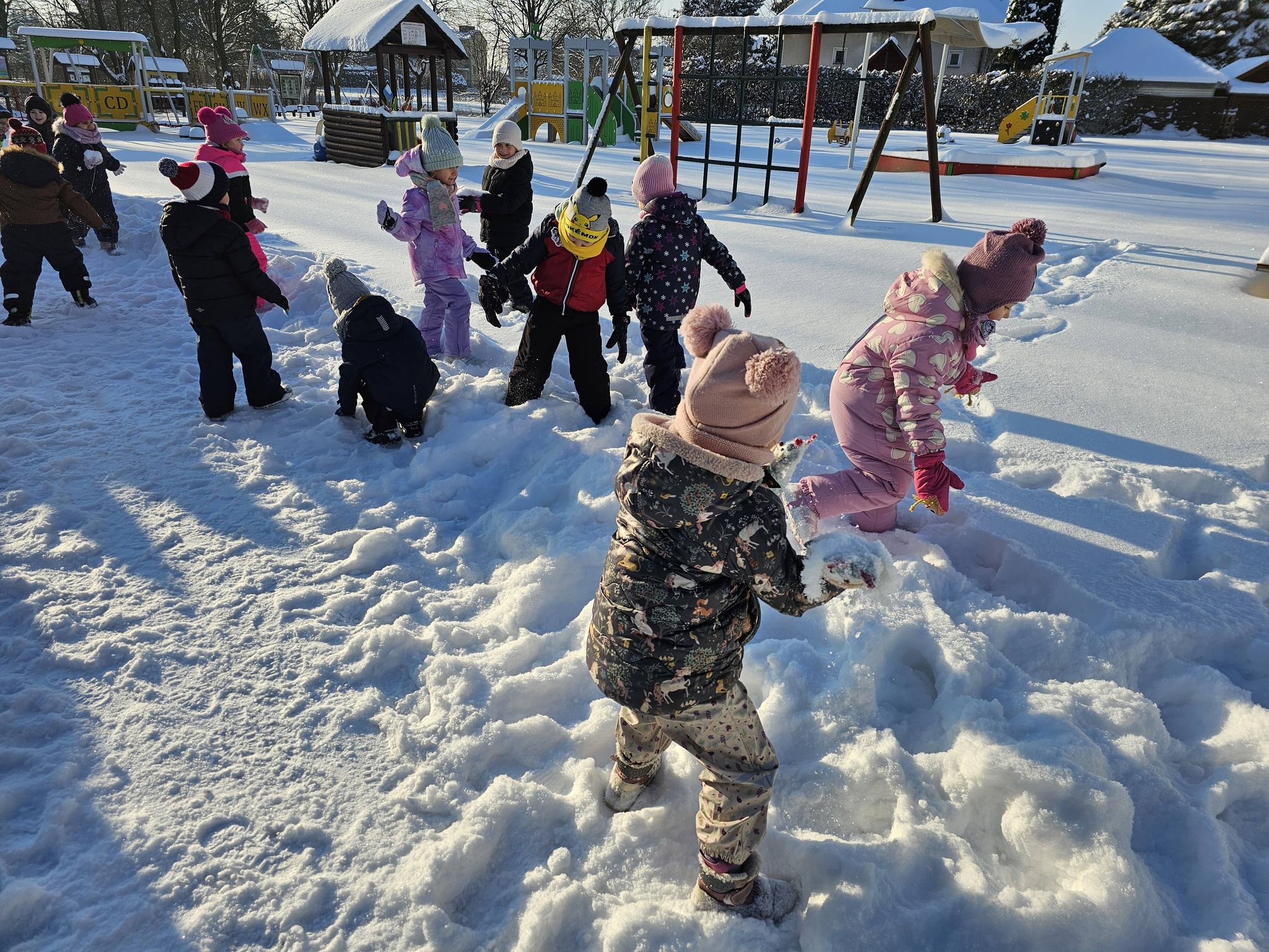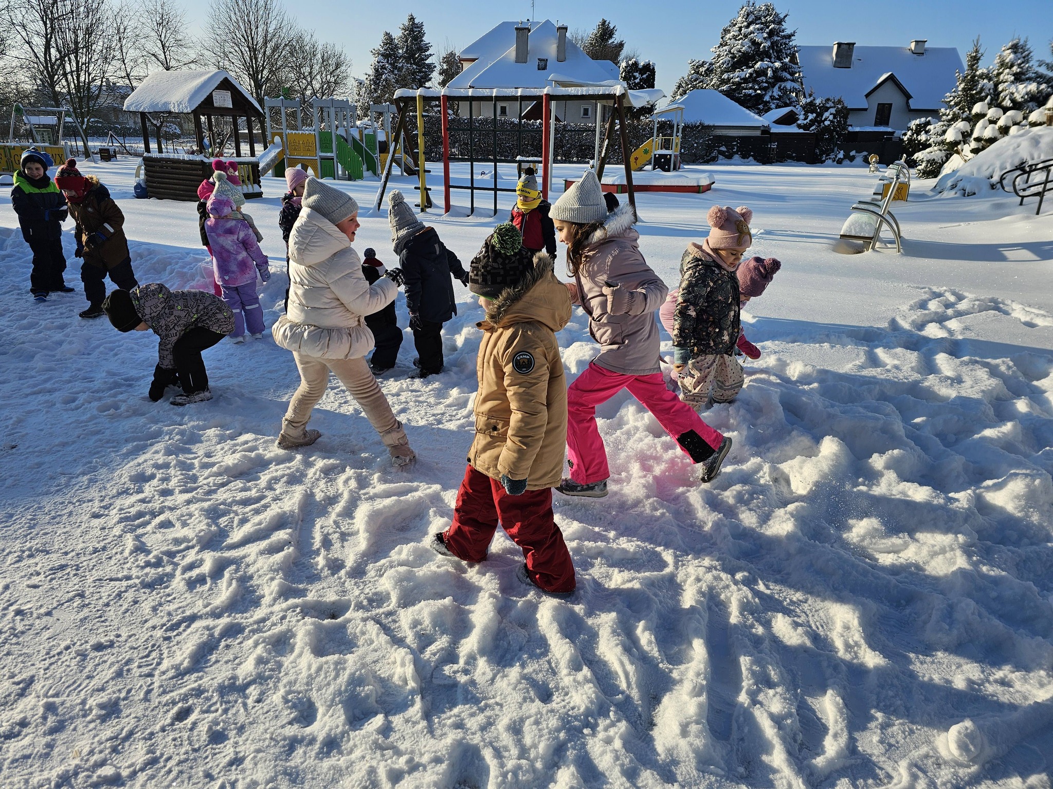 Zimowe zabawy na na śniegu starszaków