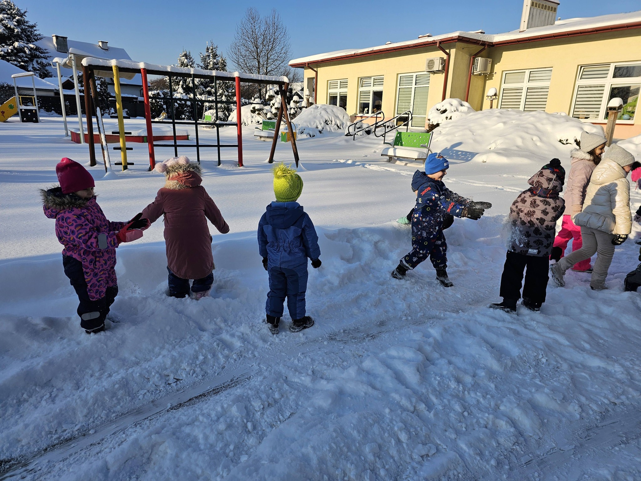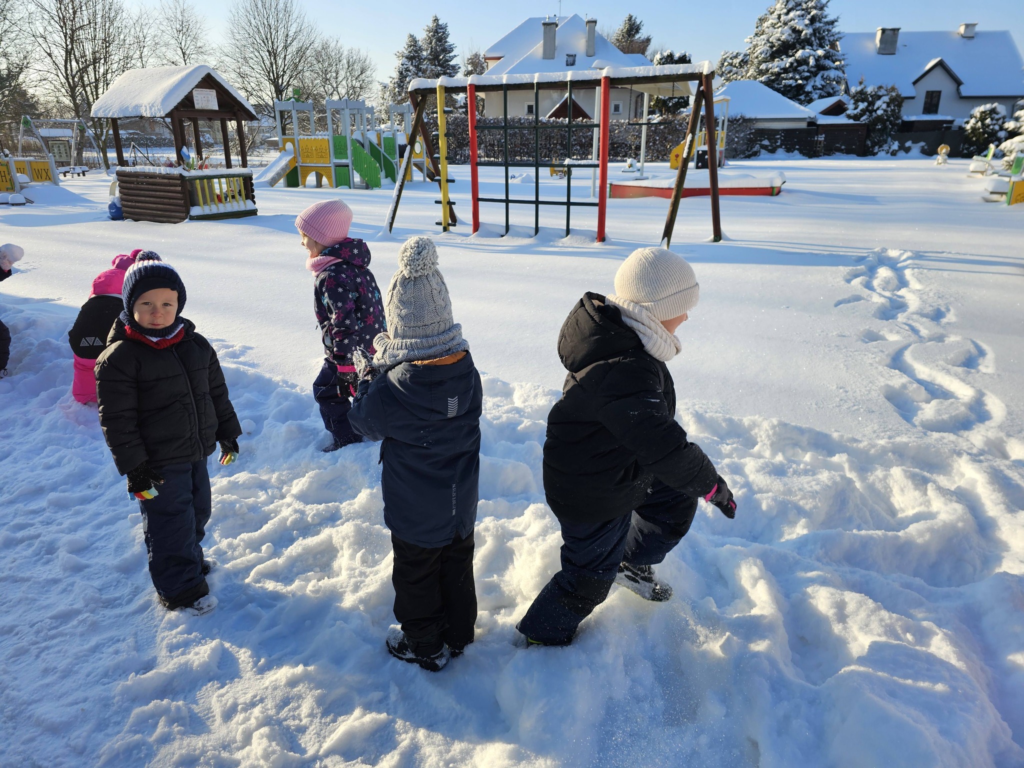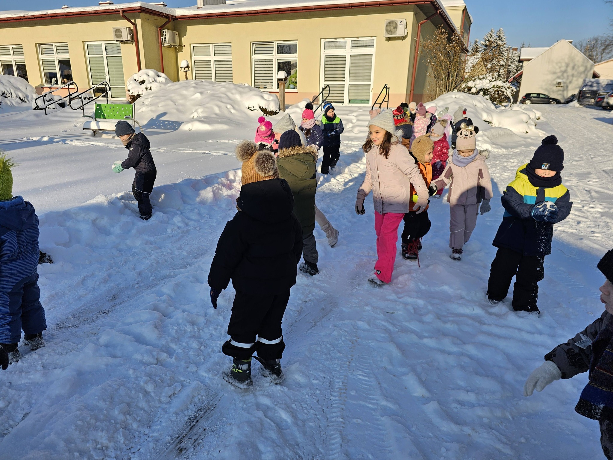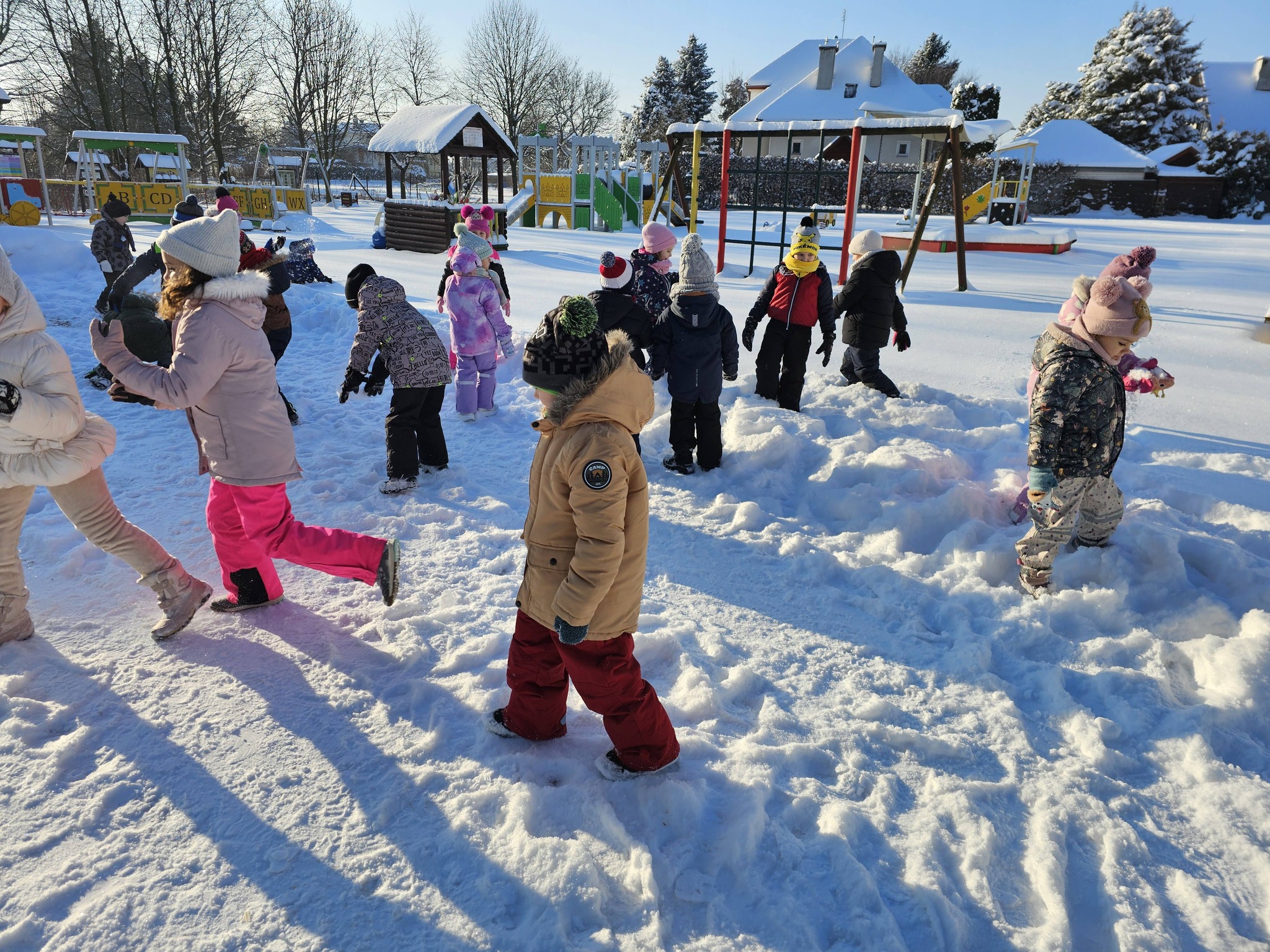 Zimowe zabawy na na śniegu starszaków