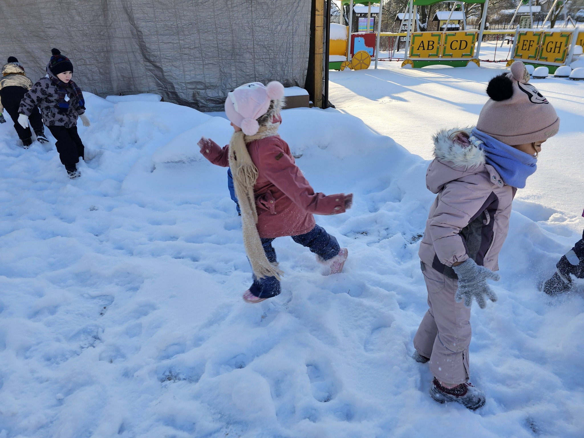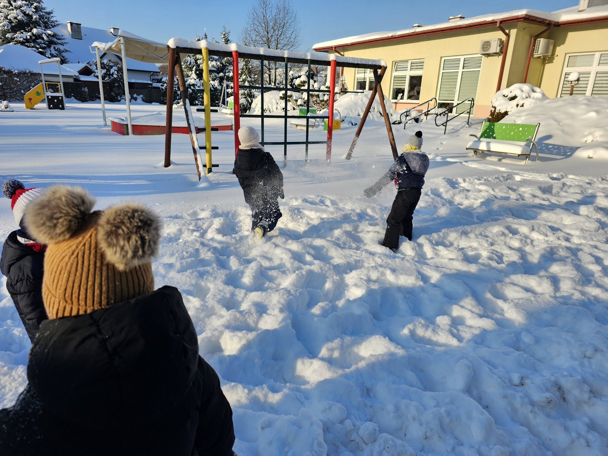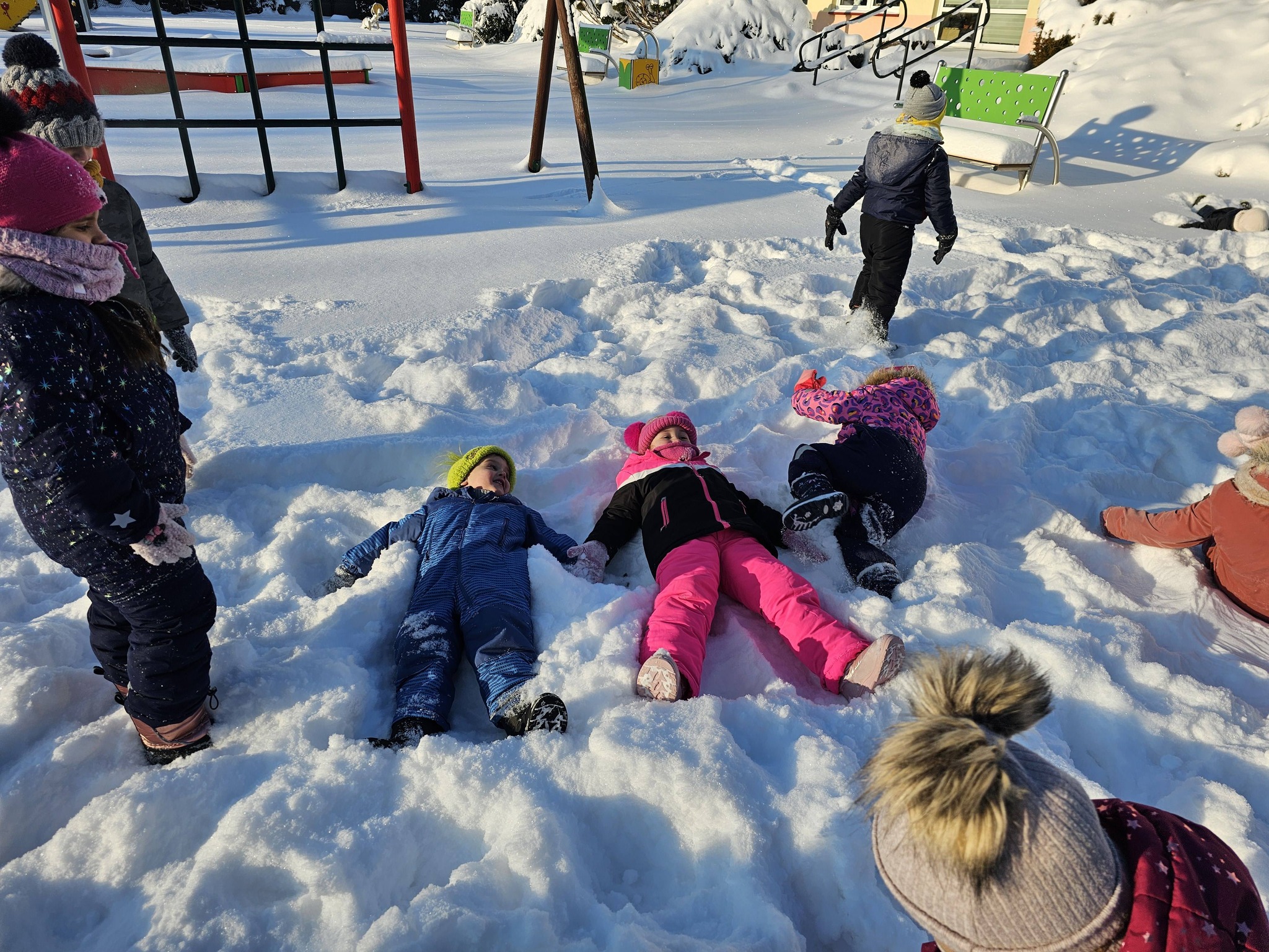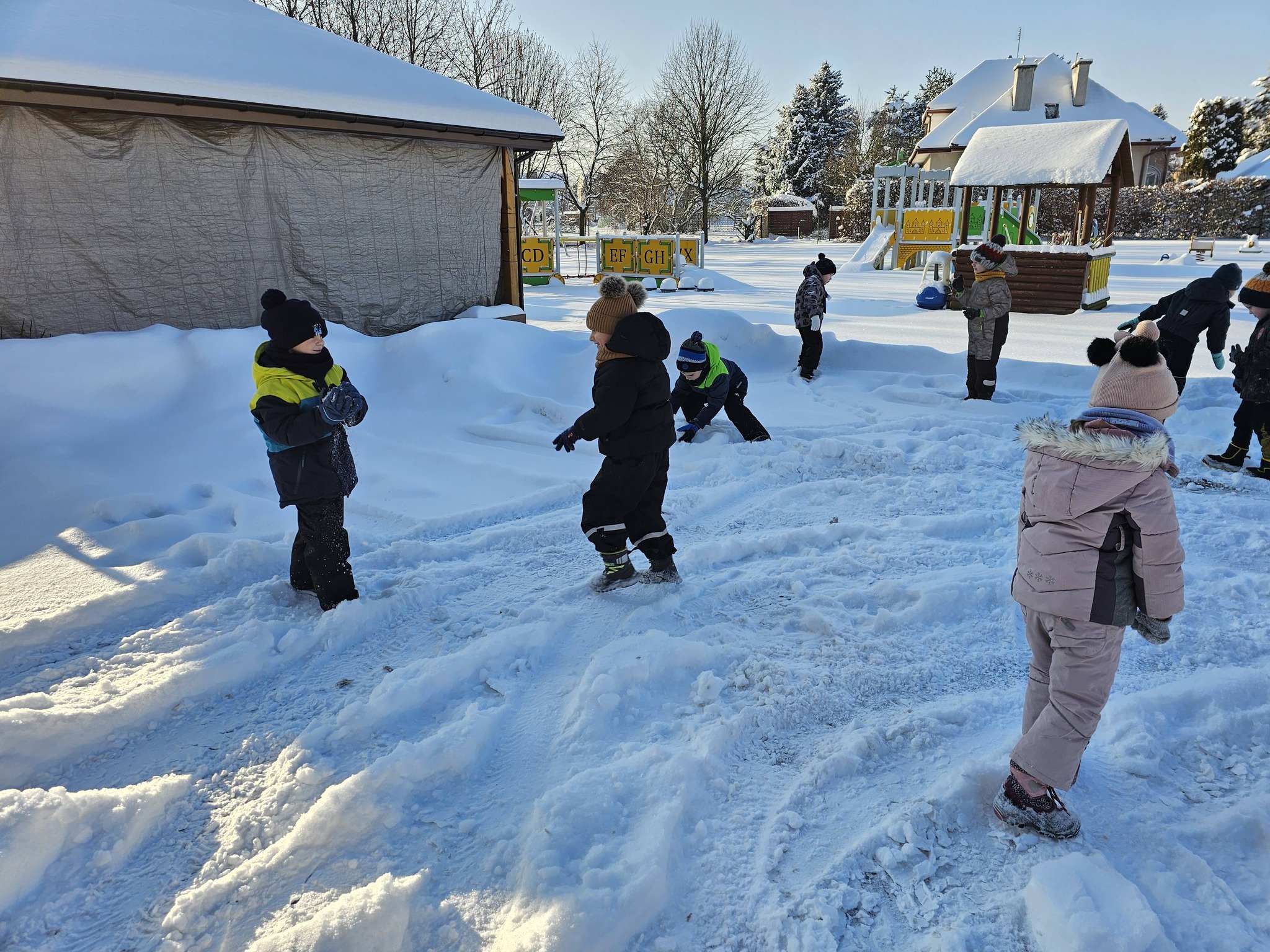 Zimowe zabawy na na śniegu starszaków